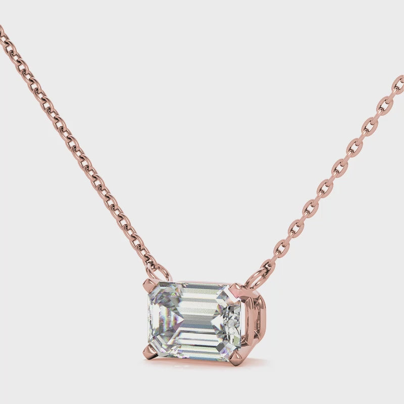 This stunning emerald cut pendant features a brilliant emerald cut American diamond set in a secure prong setting, exuding timeless elegance. The sleek lines and sparkle of the diamond are beautifully highlighted in this exquisite piece. The pendant is plated with luxurious rose gold plating, enhancing its shine and giving it a sophisticated finish. Crafted from durable sterling silver, this necklace combines strength with style. Perfect as a special pendant for the wife, it makes a meaningful and elegant gift for any occasion. Its minimalist design and refined appearance make it a versatile piece, ideal for both daily wear and evening events, making it the perfect American diamond pendant for those who appreciate understated luxury.