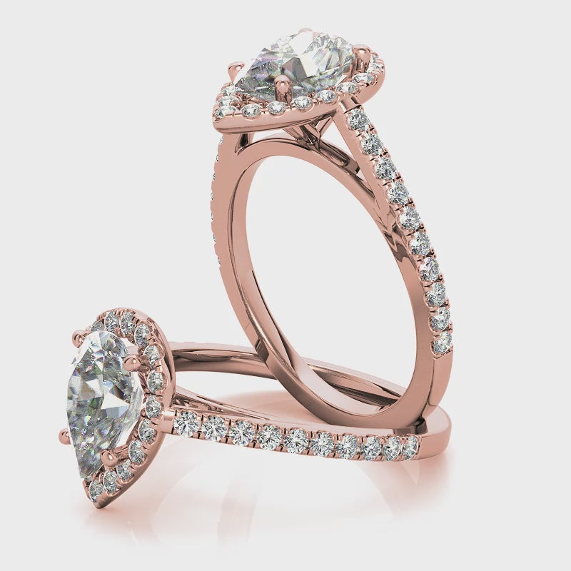This beautiful ring showcases a dazzling pear shaped american diamond as the central highlight, elegantly set in a secure 4 prong setting. The brilliance of the centerpiece is further enhanced by a delicate halo of smaller american diamond stones that surround it, creating a radiant and eye catching effect. Designed with versatility in mind, this piece is a stackable ring, allowing it to be worn alone for a refined look or layered with other rings for a bold, modern style. Both sides of the half shank are embellished with sparkling american diamonds, adding extra shine and sophistication to the band. Crafted in premium sterling silver and finished with a luxurious rose gold plating, this ring also features an adjustable shank, ensuring a perfect fit for different finger sizes without compromising on comfort or elegance. This ring comes with a matching stackable band, which you can wear together for a complete stacked look or separately on other fingers for added styling flexibility. Whether worn as a statement piece or part of a layered set, this ring is a timeless addition to any jewelry collection perfect for those who love stackable rings for women or are seeking a brilliant American diamond silver ring.