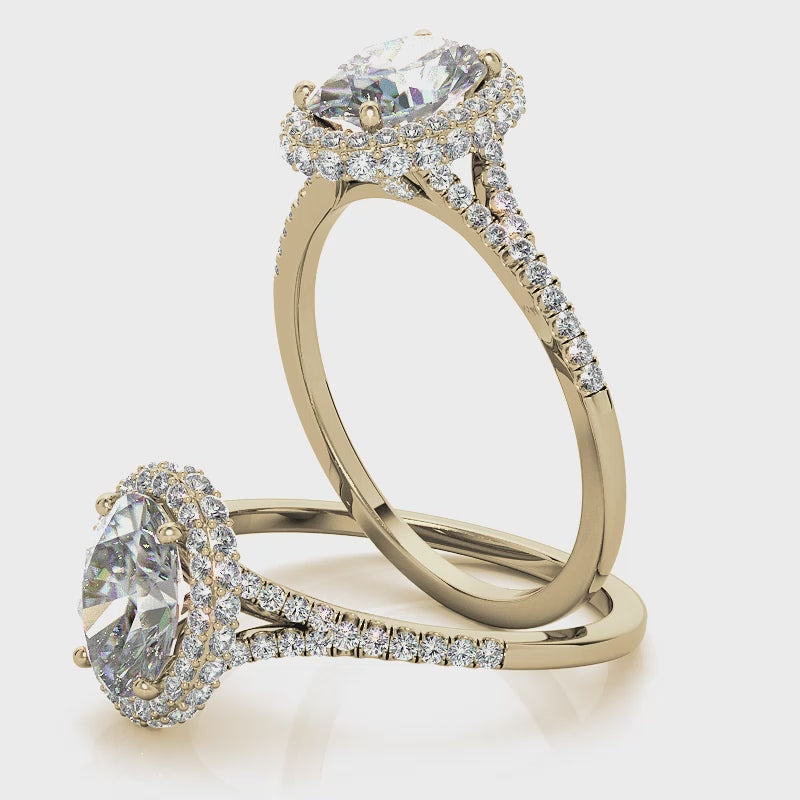 This elegant formal ring for women features a brilliant oval shape solitaire american diamond stone set in a classic halo setting, adding extra sparkle and dimension to its center. The design is enhanced by a stylish split shank, with shimmering american diamond stones adorning the half band for added shine. Crafted in high-quality sterling silver and finished with a luxurious yellow gold plating, this ring exudes timeless beauty. Perfect as a forever ring, it effortlessly combines grace and modern charm ideal for both daily wear and special occasions.
